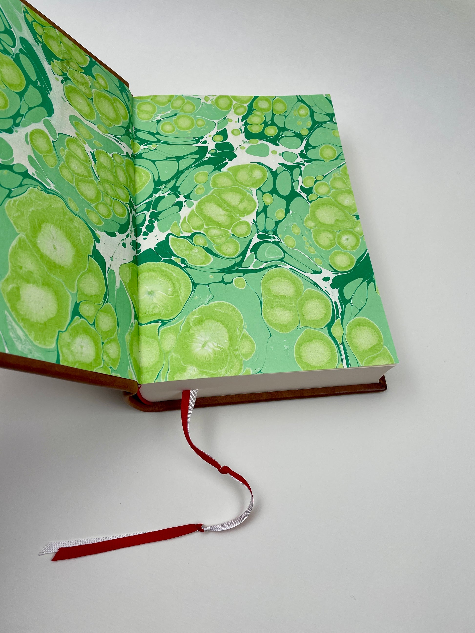 ✨ grünes Handmarmorpapier als Vor- und Nachsatz