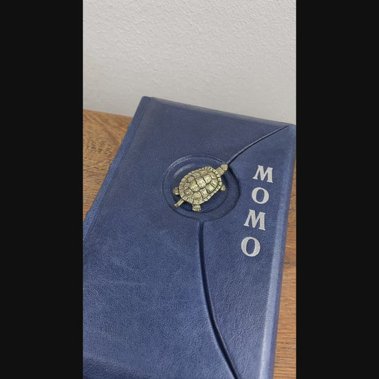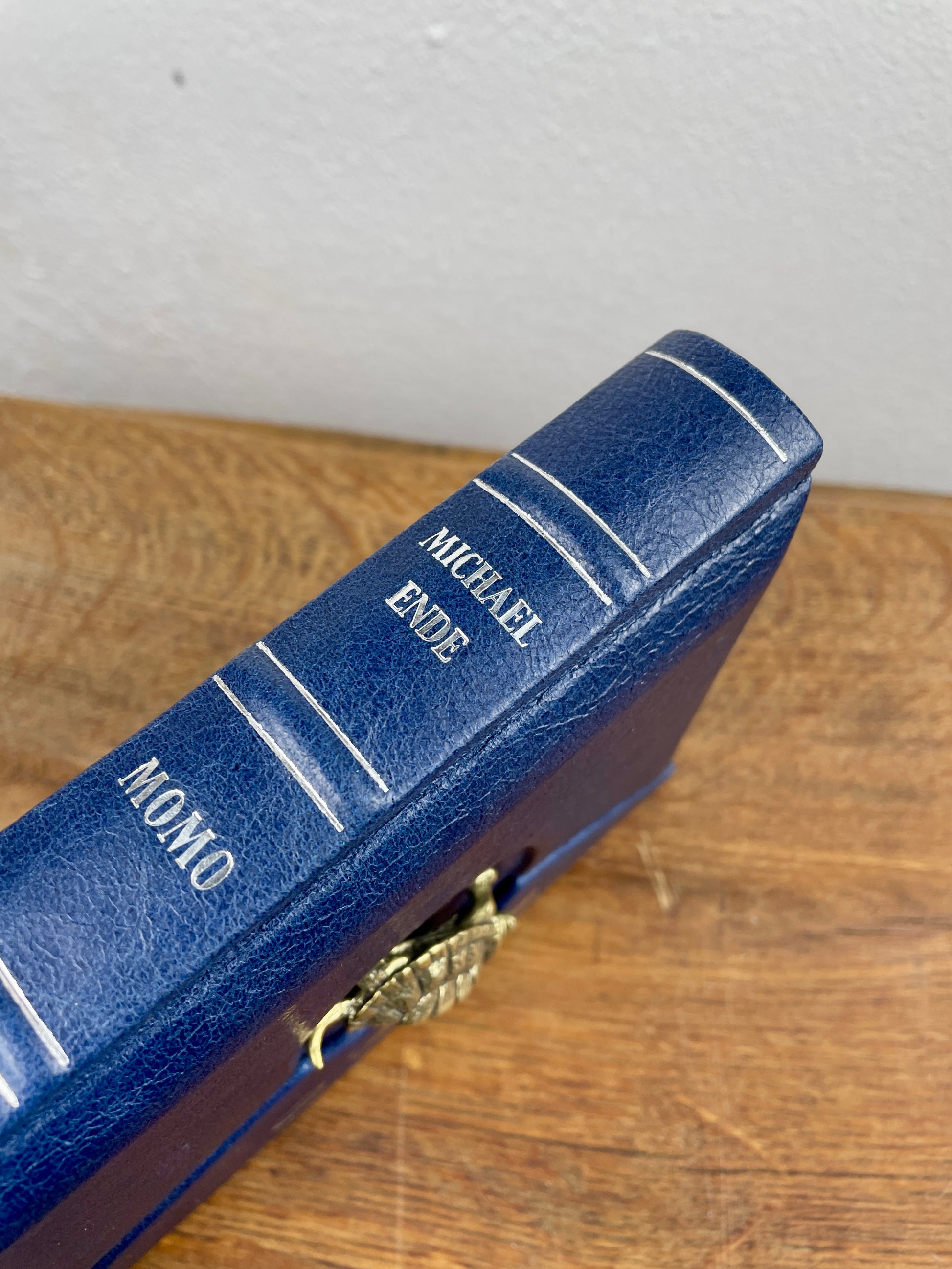 Momo von Michael Ende – Unikat im antikblauen Ledereinband mit magnetischer Klappe